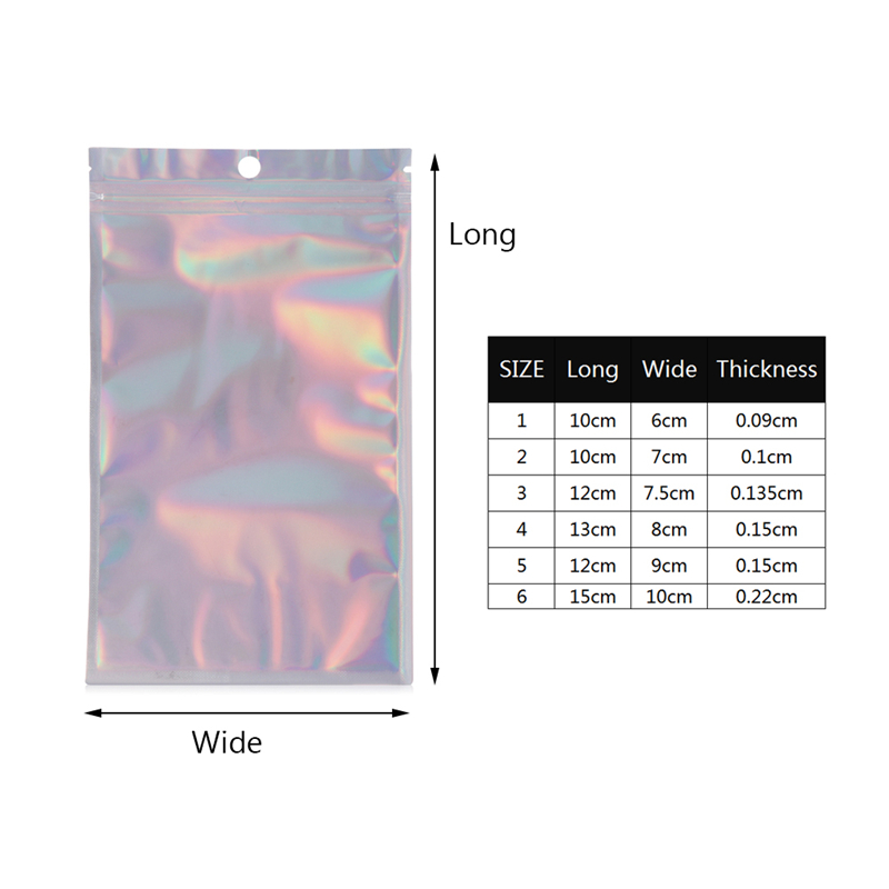 Inilinyo na may kulay arco iris na hologramang nagiging sikat ito sa gitna ng mga bag para sa pag-iimbak ng pagkain, lumiliwanag sa ilalim ng liwanag ng araw o spotlight, makikita ang magandang kulay arco iris kahit nasa loob ng bahay.